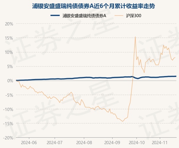 证券之星消息,11月20日,浦银安盛盛瑞纯债债券A最新单位净值为1.069元,累计净值为1.096元,较前一交易日上涨0.02%。历史数据显示该基金近1个月上涨0.25%,近3个月上涨0.49%,近6个月上涨1.46%,近1年上涨3.94%。该基金近6个月的累计收益率走势如下图: