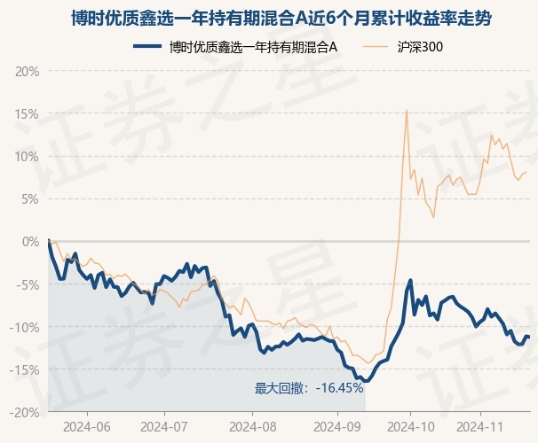 证券之星消息,11月20日,博时优质鑫选一年持有期混合A最新单位净值为0.7718元,累计净值为0.7718元,较前一交易日下跌0.12%。历史数据显示该基金近1个月下跌4.35%,近3个月上涨0.47%,近6个月下跌11.3%,近1年上涨5.99%。该基金近6个月的累计收益率走势如下图:
