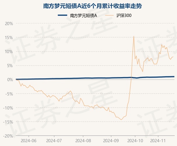 证券之星消息,11月20日,南方梦元短债A最新单位净值为1.1341元,累计净值为1.1491元,较前一交易日上涨0.01%。历史数据显示该基金近1个月上涨0.23%,近3个月上涨0.47%,近6个月上涨0.97%,近1年上涨2.57%。该基金近6个月的累计收益率走势如下图: