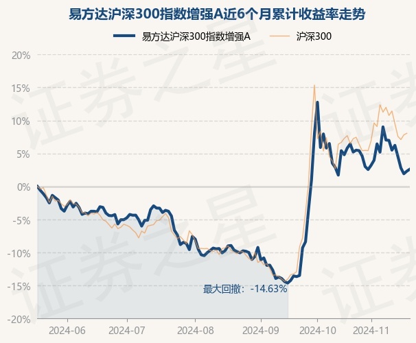 证券之星消息,11月20日,易方达沪深300指数增强A最新单位净值为0.786元,累计净值为0.786元,较前一交易日上涨0.29%。历史数据显示该基金近1个月下跌2.66%,近3个月上涨13.55%,近6个月上涨2.61%,近1年上涨16.67%。该基金近6个月的累计收益率走势如下图:
