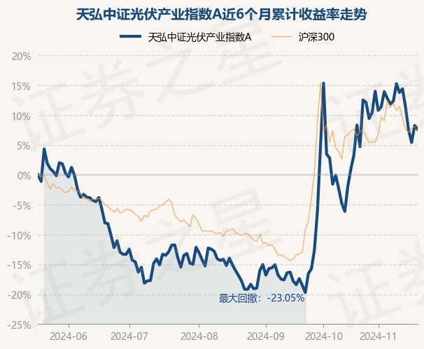 证券之星消息,11月20日,天弘中证光伏产业指数A最新单位净值为0.7247元,累计净值为0.7247元,较前一交易日下跌0.59%。历史数据显示该基金近1个月上涨9.7%,近3个月上涨29.46%,近6个月上涨7.62%,近1年下跌7.99%。该基金近6个月的累计收益率走势如下图: