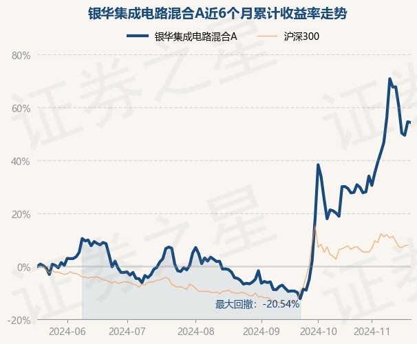 证券之星消息,11月20日,银华集成电路混合A最新单位净值为1.1405元,累计净值为1.1405元,较前一交易日下跌0.18%。历史数据显示该基金近1个月上涨18.6%,近3个月上涨61.18%,近6个月上涨54.35%,近1年上涨20.85%。该基金近6个月的累计收益率走势如下图: