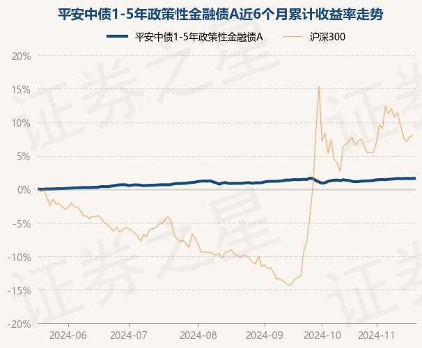 证券之星消息,11月20日,平安中债1-5年政策性金融债A最新单位净值为1.0894元,累计净值为1.1634元,较前一交易日上涨0.01%。历史数据显示该基金近1个月上涨0.27%,近3个月上涨0.72%,近6个月上涨1.61%,近1年上涨5.41%。该基金近6个月的累计收益率走势如下图: