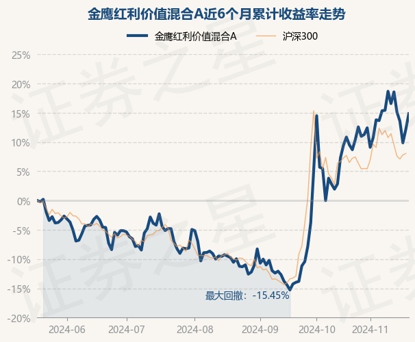 证券之星消息,11月20日,金鹰红利价值混合A最新单位净值为2.0089元,累计净值为3.8214元,较前一交易日上涨2.36%。历史数据显示该基金近1个月上涨7.03%,近3个月上涨28.4%,近6个月上涨14.85%,近1年上涨6.61%。该基金近6个月的累计收益率走势如下图: