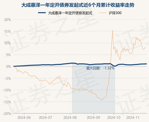 证券之星消息,11月20日,大成惠泽一年定开债券发起式最新单位净值为1.0271元,累计净值为1.1213元,较前一交易日上涨0.02%。历史数据显示该基金近1个月上涨0.17%,近3个月上涨0.01%,近6个月上涨1.04%,近1年上涨4.24%。该基金近6个月的累计收益率走势如下图:
