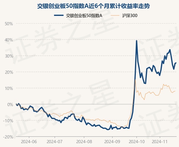 证券之星消息,11月20日,交银创业板50指数A最新单位净值为1.5375元,累计净值为1.5695元,较前一交易日上涨0.33%。历史数据显示该基金近1个月上涨3.03%,近3个月上涨45.81%,近6个月上涨25.38%,近1年上涨21.26%。该基金近6个月的累计收益率走势如下图: