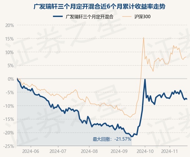 证券之星消息,11月20日,广发瑞轩三个月定开混合最新单位净值为0.5672元,累计净值为0.5672元,较前一交易日下跌0.32%。历史数据显示该基金近1个月下跌0.65%,近3个月上涨11.81%,近6个月下跌7.65%,近1年下跌12.14%。该基金近6个月的累计收益率走势如下图: