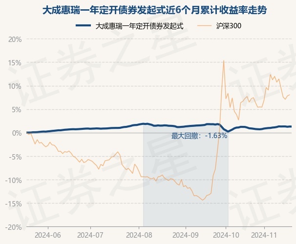 证券之星消息,11月20日,大成惠瑞一年定开债券发起式最新单位净值为1.0141元,累计净值为1.0999元,较前一交易日下跌0.01%。历史数据显示该基金近1个月上涨0.07%,近3个月下跌0.24%,近6个月上涨1.29%,近1年上涨4.51%。该基金近6个月的累计收益率走势如下图: