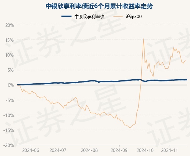 证券之星消息,11月20日,中银欣享利率债最新单位净值为1.0329元,累计净值为1.1314元,较前一交易日上涨0.0%。历史数据显示该基金近1个月上涨0.22%,近3个月上涨0.62%,近6个月上涨1.71%,近1年上涨4.1%。该基金近6个月的累计收益率走势如下图: