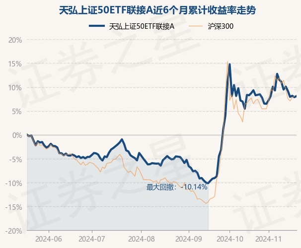 证券之星消息,11月20日,天弘上证50ETF联接A最新单位净值为1.301元,累计净值为1.301元,较前一交易日上涨0.22%。历史数据显示该基金近1个月下跌0.22%,近3个月上涨13.61%,近6个月上涨8.11%,近1年上涨13.43%。该基金近6个月的累计收益率走势如下图: