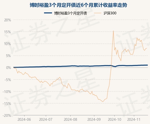 证券之星消息,11月20日,博时裕盈3个月定开债最新单位净值为1.0188元,累计净值为1.416元,较前一交易日上涨0.0%。历史数据显示该基金近1个月上涨0.15%,近3个月上涨0.37%,近6个月上涨0.95%,近1年上涨3.17%。该基金近6个月的累计收益率走势如下图: