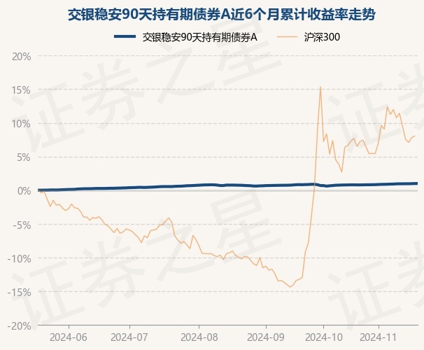 证券之星消息,11月20日,交银稳安90天持有期债券A最新单位净值为1.0549元,累计净值为1.0549元,较前一交易日上涨0.01%。历史数据显示该基金近1个月上涨0.21%,近3个月上涨0.26%,近6个月上涨1.01%,近1年上涨3.26%。该基金近6个月的累计收益率走势如下图: