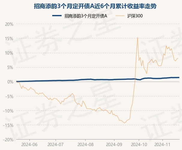 证券之星消息,11月20日,招商添韵3个月定开债A最新单位净值为1.0399元,累计净值为1.1479元,较前一交易日下跌0.01%。历史数据显示该基金近1个月上涨0.2%,近3个月上涨0.71%,近6个月上涨1.38%,近1年上涨3.5%。该基金近6个月的累计收益率走势如下图: