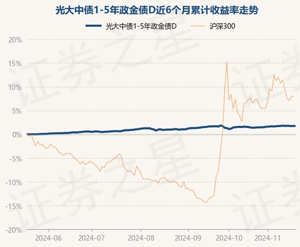 证券之星消息,11月20日,光大中债1-5年政金债D最新单位净值为1.0191元,累计净值为1.1015元,较前一交易日下跌0.02%。历史数据显示该基金近1个月上涨0.17%,近3个月上涨0.75%,近6个月上涨1.73%,近1年上涨4.37%。该基金近6个月的累计收益率走势如下图: