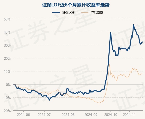 证券之星消息,11月20日,证保LOF最新单位净值为0.9139元,累计净值为1.9375元,较前一交易日上涨0.1%。历史数据显示该基金近1个月上涨2.95%,近3个月上涨41.3%,近6个月上涨32.33%,近1年上涨25.02%。该基金近6个月的累计收益率走势如下图: