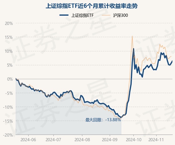 证券之星消息,11月20日,上证综指ETF最新单位净值为0.82元,累计净值为1.703元,较前一交易日上涨0.74%。历史数据显示该基金近1个月上涨2.89%,近3个月上涨16.15%,近6个月上涨6.36%,近1年上涨8.89%。该基金近6个月的累计收益率走势如下图:
