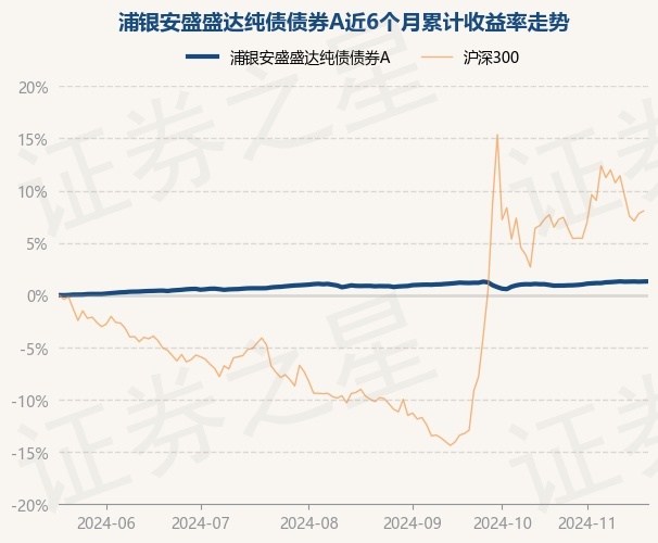 证券之星消息,11月20日,浦银安盛盛达纯债债券A最新单位净值为1.0097元,累计净值为1.2975元,较前一交易日上涨0.01%。历史数据显示该基金近1个月上涨0.27%,近3个月上涨0.42%,近6个月上涨1.32%,近1年上涨3.29%。该基金近6个月的累计收益率走势如下图: