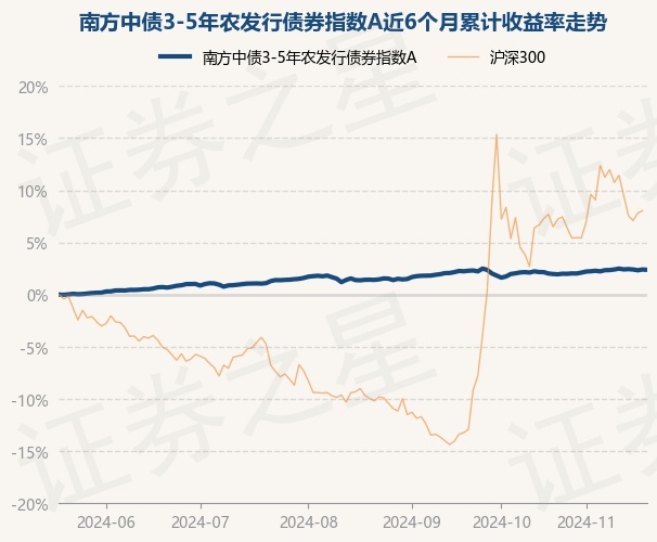 证券之星消息,11月20日,南方中债3-5年农发行债券指数A最新单位净值为1.0887元,累计净值为1.2417元,较前一交易日下跌0.03%。历史数据显示该基金近1个月上涨0.21%,近3个月上涨0.94%,近6个月上涨2.38%,近1年上涨5.3%。该基金近6个月的累计收益率走势如下图: