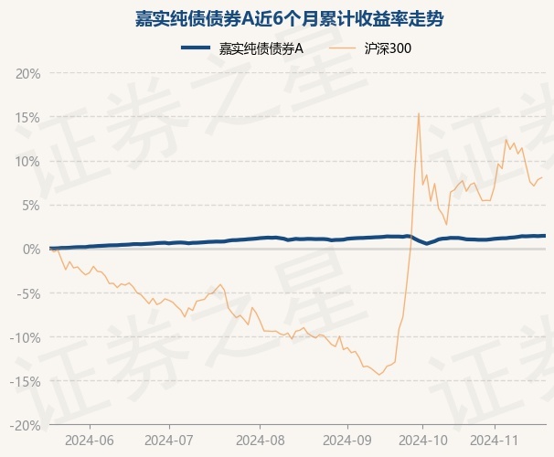 证券之星消息,11月20日,嘉实纯债债券A最新单位净值为1.3447元,累计净值为1.5323元,较前一交易日上涨0.01%。历史数据显示该基金近1个月上涨0.24%,近3个月上涨0.35%,近6个月上涨1.43%,近1年上涨3.95%。该基金近6个月的累计收益率走势如下图: