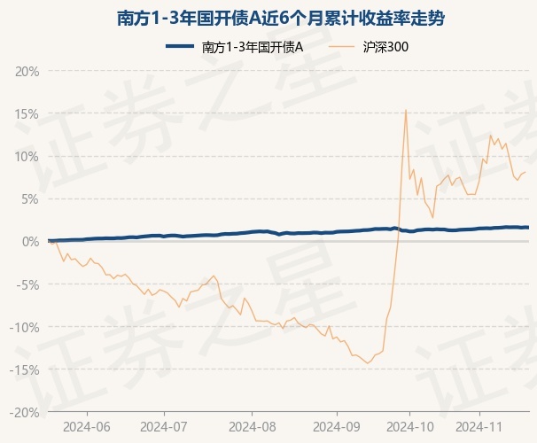 证券之星消息,11月20日,南方1-3年国开债A最新单位净值为1.0317元,累计净值为1.1917元,较前一交易日下跌0.02%。历史数据显示该基金近1个月上涨0.23%,近3个月上涨0.66%,近6个月上涨1.56%,近1年上涨3.83%。该基金近6个月的累计收益率走势如下图: