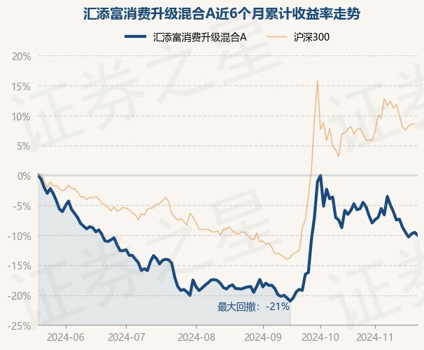 证券之星消息,11月21日,汇添富消费升级混合A最新单位净值为1.5826元,累计净值为1.5826元,较前一交易日下跌0.57%。历史数据显示该基金近1个月下跌3.75%,近3个月上涨10.99%,近6个月下跌10.04%,近1年下跌8.14%。该基金近6个月的累计收益率走势如下图: