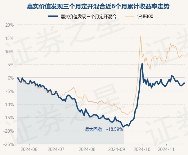 证券之星消息,11月21日,嘉实价值发现三个月定开混合最新单位净值为0.9826元,累计净值为1.0805元,较前一交易日上涨0.0%。历史数据显示该基金近1个月上涨0.72%,近3个月上涨15.89%,近6个月下跌2.14%,近1年上涨10.72%。该基金近6个月的累计收益率走势如下图: