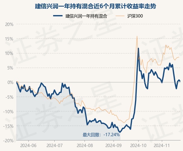 证券之星消息,11月21日,建信兴润一年持有混合最新单位净值为0.643元,累计净值为0.643元,较前一交易日下跌0.48%。历史数据显示该基金近1个月下跌2.84%,近3个月上涨16.74%,近6个月上涨0.23%,近1年上涨1.21%。该基金近6个月的累计收益率走势如下图: