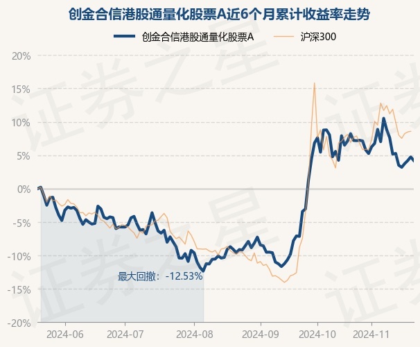 证券之星消息,11月21日,创金合信港股通量化股票A最新单位净值为0.7504元,累计净值为0.7504元,较前一交易日下跌0.52%。历史数据显示该基金近1个月下跌2.15%,近3个月上涨15.27%,近6个月上涨4.21%,近1年上涨8.25%。该基金近6个月的累计收益率走势如下图: