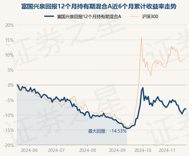 证券之星消息,11月21日,富国兴泉回报12个月持有期混合A最新单位净值为0.788元,累计净值为0.788元,较前一交易日下跌0.05%。历史数据显示该基金近1个月下跌2.39%,近3个月上涨3.11%,近6个月下跌8.03%,近1年上涨3.56%。该基金近6个月的累计收益率走势如下图:
