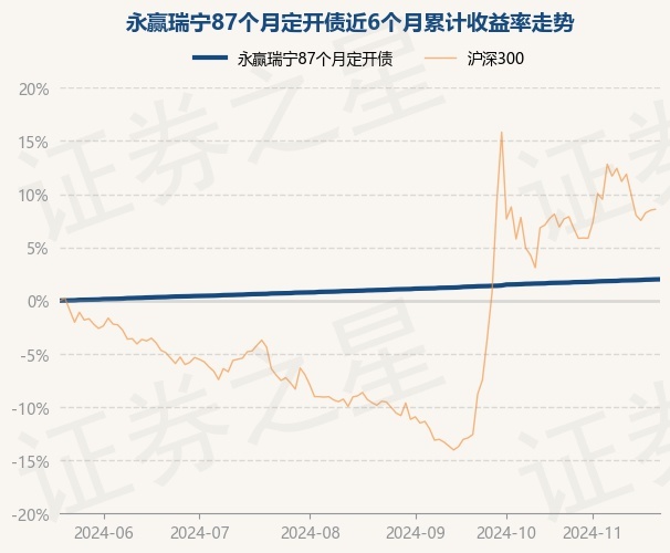 证券之星消息,11月21日,永赢瑞宁87个月定开债最新单位净值为1.0901元,累计净值为1.1721元,较前一交易日上涨0.01%。历史数据显示该基金近1个月上涨0.34%,近3个月上涨1.0%,近6个月上涨2.0%,近1年上涨3.91%。该基金近6个月的累计收益率走势如下图: