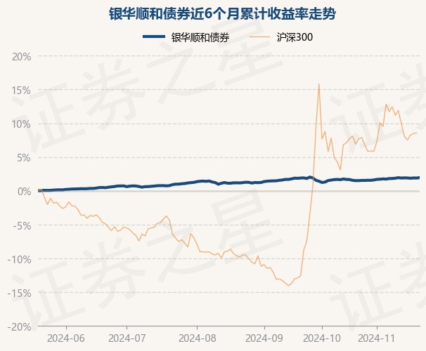 证券之星消息,11月21日,银华顺和债券最新单位净值为1.0391元,累计净值为1.0471元,较前一交易日上涨0.06%。历史数据显示该基金近1个月上涨0.28%,近3个月上涨0.77%,近6个月上涨1.95%,近1年上涨4.42%。该基金近6个月的累计收益率走势如下图: