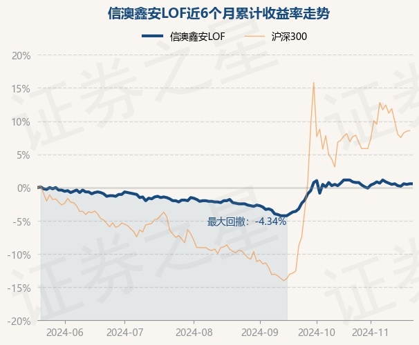 证券之星消息,11月21日,信澳鑫安LOF最新单位净值为1.065元,累计净值为1.392元,较前一交易日上涨0.0%。历史数据显示该基金近1个月下跌0.56%,近3个月上涨3.0%,近6个月上涨0.57%,近1年上涨5.86%。该基金近6个月的累计收益率走势如下图:
