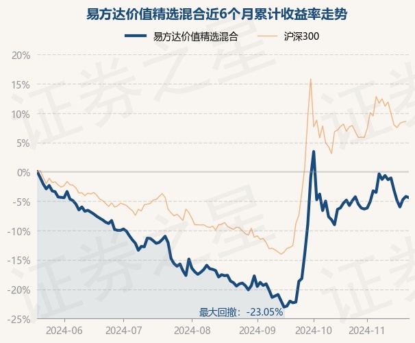 证券之星消息,11月21日,易方达价值精选混合最新单位净值为1.1508元,累计净值为3.8598元,较前一交易日下跌0.19%。历史数据显示该基金近1个月上涨1.87%,近3个月上涨17.87%,近6个月下跌4.39%,近1年上涨3.03%。该基金近6个月的累计收益率走势如下图: