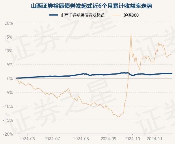 山西证券裕辰债券发起式为债券型-混合一级基金,根据最新一期基金季报显示,该基金资产配置:无股票类资产,债券占净值比111.28%,现金占净值比0.11%。