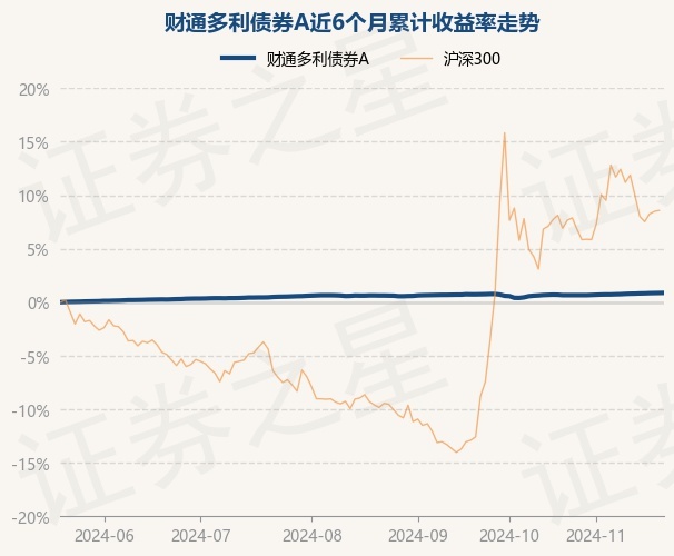 证券之星消息,11月21日,财通多利债券A最新单位净值为1.1323元,累计净值为1.1323元,较前一交易日上涨0.01%。历史数据显示该基金近1个月上涨0.17%,近3个月上涨0.25%,近6个月上涨0.87%,近1年上涨2.44%。该基金近6个月的累计收益率走势如下图: