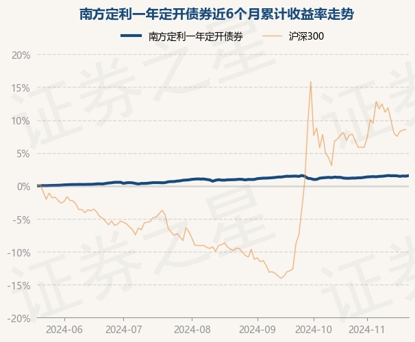 证券之星消息,11月21日,南方定利一年定开债券最新单位净值为1.0634元,累计净值为1.0934元,较前一交易日上涨0.08%。历史数据显示该基金近1个月上涨0.26%,近3个月上涨0.62%,近6个月上涨1.57%,近1年上涨6.99%。该基金近6个月的累计收益率走势如下图: