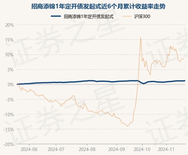 证券之星消息,11月21日,招商添锦1年定开债发起式最新单位净值为1.0524元,累计净值为1.1319元,较前一交易日上涨0.04%。历史数据显示该基金近1个月上涨0.25%,近3个月上涨0.19%,近6个月上涨1.17%,近1年上涨3.66%。该基金近6个月的累计收益率走势如下图:
