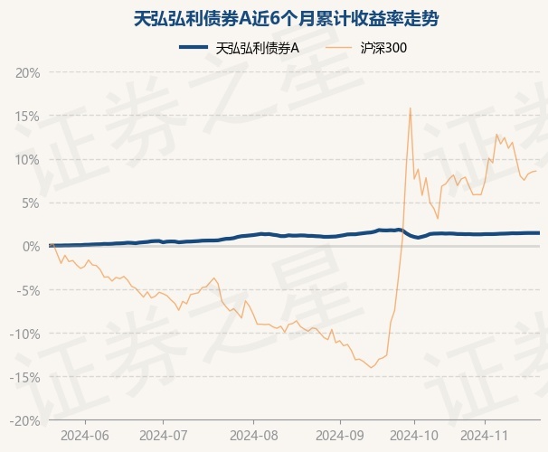 证券之星消息,11月21日,天弘弘利债券A最新单位净值为1.1059元,累计净值为1.5683元,较前一交易日上涨0.0%。历史数据显示该基金近1个月上涨0.05%,近3个月上涨0.33%,近6个月上涨1.46%,近1年上涨8.07%。该基金近6个月的累计收益率走势如下图: