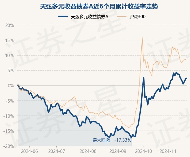 证券之星消息,11月21日,天弘多元收益债券A最新单位净值为1.1573元,累计净值为1.1573元,较前一交易日上涨0.1%。历史数据显示该基金近1个月上涨4.71%,近3个月上涨22.45%,近6个月上涨2.35%,近1年上涨2.87%。该基金近6个月的累计收益率走势如下图: