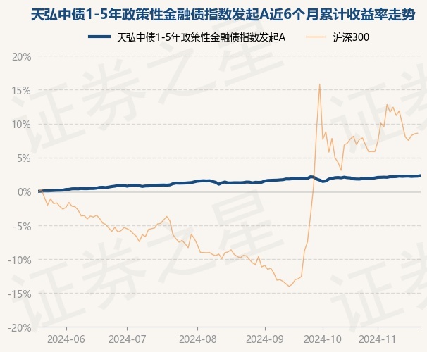 证券之星消息,11月21日,天弘中债1-5年政策性金融债指数发起A最新单位净值为1.0425元,累计净值为1.1231元,较前一交易日上涨0.08%。历史数据显示该基金近1个月上涨0.33%,近3个月上涨1.04%,近6个月上涨2.32%,近1年上涨5.17%。该基金近6个月的累计收益率走势如下图: