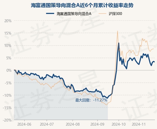 证券之星消息,11月21日,海富通国策导向混合A最新单位净值为1.8502元,累计净值为2.8893元,较前一交易日下跌0.19%。历史数据显示该基金近1个月下跌0.66%,近3个月上涨12.82%,近6个月上涨3.3%,近1年上涨7.45%。该基金近6个月的累计收益率走势如下图: