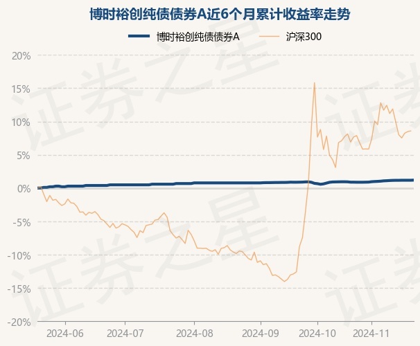 证券之星消息,11月21日,博时裕创纯债债券A最新单位净值为1.0242元,累计净值为1.3392元,较前一交易日上涨0.02%。历史数据显示该基金近1个月上涨0.24%,近3个月上涨0.41%,近6个月上涨1.19%,近1年上涨3.61%。该基金近6个月的累计收益率走势如下图: