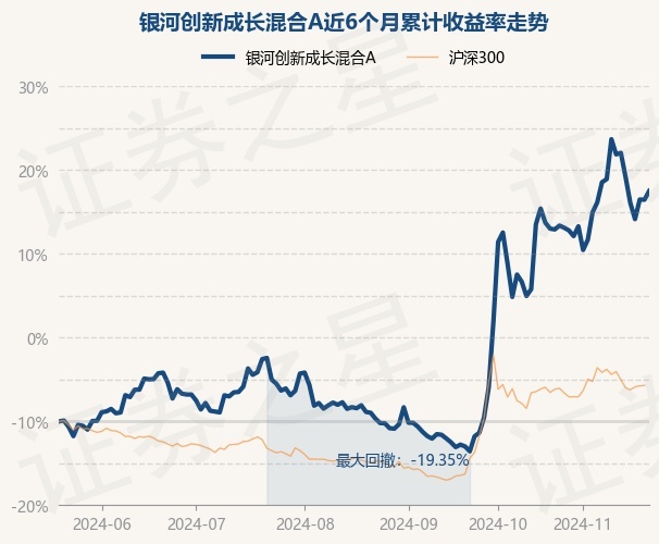 证券之星消息,11月21日,银河创新成长混合A最新单位净值为6.0422元,累计净值为6.0422元,较前一交易日上涨1.35%。历史数据显示该基金近1个月上涨2.77%,近3个月上涨51.88%,近6个月上涨54.98%,近1年上涨31.48%。该基金近6个月的累计收益率走势如下图: