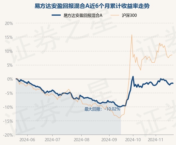 证券之星消息,11月21日,易方达安盈回报混合A最新单位净值为2.12元,累计净值为2.318元,较前一交易日下跌0.09%。历史数据显示该基金近1个月上涨0.33%,近3个月上涨7.72%,近6个月下跌1.62%,近1年上涨1.24%。该基金近6个月的累计收益率走势如下图: