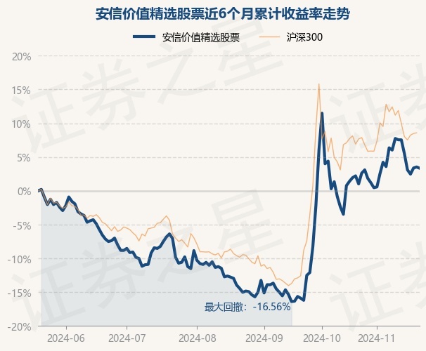 证券之星消息,11月21日,安信价值精选股票最新单位净值为3.6499元,累计净值为3.6499元,较前一交易日下跌0.18%。历史数据显示该基金近1个月上涨1.92%,近3个月上涨20.79%,近6个月上涨3.34%,近1年下跌2.29%。该基金近6个月的累计收益率走势如下图: