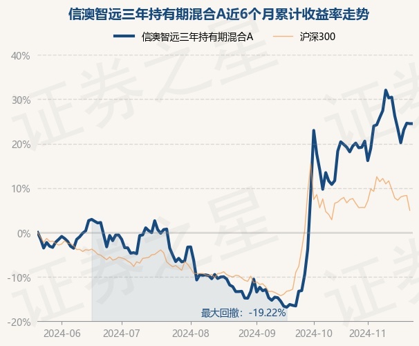 证券之星消息,11月22日,信澳智远三年持有期混合A最新单位净值为0.7244元,累计净值为0.7244元,较前一交易日上涨0.0%。历史数据显示该基金近1个月上涨1.36%,近3个月上涨40.12%,近6个月上涨21.46%,近1年下跌1.07%。该基金近6个月的累计收益率走势如下图: