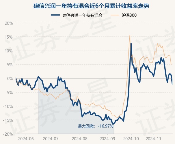 证券之星消息,11月22日,建信兴润一年持有混合最新单位净值为0.6226元,累计净值为0.6226元,较前一交易日下跌3.17%。历史数据显示该基金近1个月下跌6.92%,近3个月上涨13.24%,近6个月下跌2.08%,近1年上涨0.02%。该基金近6个月的累计收益率走势如下图: