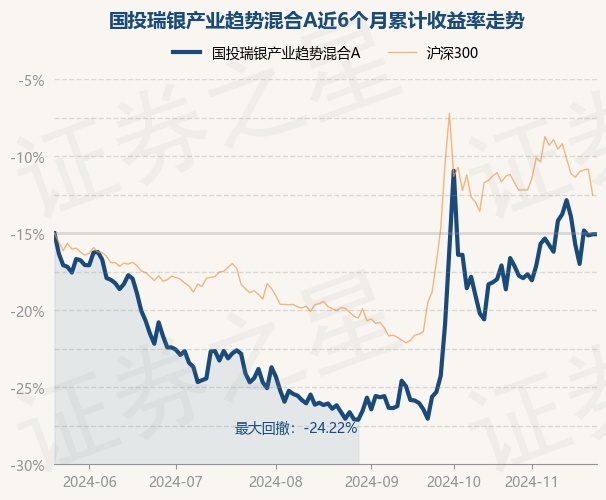 证券之星消息,11月22日,国投瑞银产业趋势混合A最新单位净值为0.6257元,累计净值为0.6257元,较前一交易日上涨0.0%。历史数据显示该基金近1个月上涨2.84%,近3个月上涨25.95%,近6个月下跌3.28%,近1年下跌12.44%。该基金近6个月的累计收益率走势如下图: