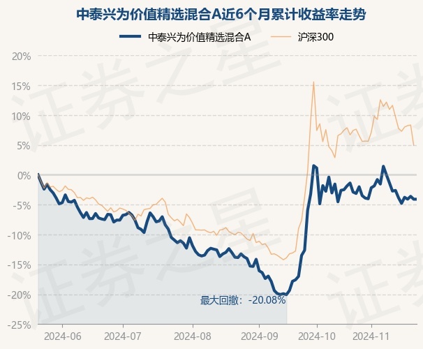 证券之星消息,11月22日,中泰兴为价值精选混合A最新单位净值为1.0275元,累计净值为1.0275元,较前一交易日上涨0.0%。历史数据显示该基金近1个月下跌5.01%,近3个月上涨8.21%,近6个月下跌6.79%,近1年上涨7.25%。该基金近6个月的累计收益率走势如下图: