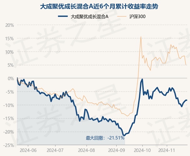 证券之星消息,11月22日,大成聚优成长混合A最新单位净值为0.903元,累计净值为0.903元,较前一交易日上涨0.0%。历史数据显示该基金近1个月下跌7.25%,近3个月上涨5.52%,近6个月下跌11.05%,近1年上涨4.33%。该基金近6个月的累计收益率走势如下图: